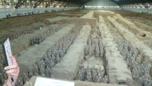 Om 23.30 uur lagen we allemaal in ons nestje en om 08.00 uur zaten we aan het ontbijt. Om 09.15 uur reden we de stad Lanzhou uit, richting Xi’an. Het werd een tocht door nogal heuvelachtig terrein dat eindigde in Xi’an, 1100 mtr. lager. Ook werd de omgeving alsmaar groener en groener, met veel gewassen op terrasachtige gronden die men in dit heuvelachtige gebied overal heeft aangelegd. Ook zagen we steeds meer fruitbomen. Rond 17.00 uur reden we de miljoenenstad( > 10 milj.) Xi’an binnen. Tjonge wat een partij wolkenkrabbers hier. Lun had alweer zo’n prachtig hotel geboekt van dezelfde familie, als waaruit we vanmorgen vertrokken zijn. Nu zitten we in de lobby aan ons dagelijks welkomsbiertje. Morgen hebben we wederom een rustdag hier en gaan we het wereldberoemde terracottaleger aanschouwen en nog heel wat meer. Hier zullen we u morgen over berichten.Manana.