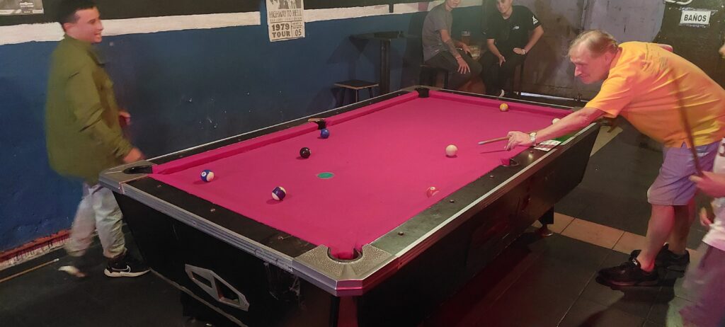 Rond 18:30 uur reden we de stad Cordoba in. Tripper Guido die ervaren is in het boeken van mooie hotels, had er nu een geboekt in het centrum van de stad. Na een tweetal verfrissende biertjes na aankomst, zijn we om 20:00 uur aan de wandel gegaan. Al snel vonden we het gebied met vele bars , restaurants en marktkramen vol met allerlei artikelen. We hebben ons laten verleiden voor wat heerlijk Argentijns vlees van varkens, runderen en kippenpootjes op plankjes. Het werd geserveerd met een heerlijk fles rode Merlot wijn. Later belanden we in een biljartcafé, alwaar we nog eens een keer onze biljartkunsten konden laten zien aan de Argentijnse jongeren daar. Rond 3:00 uur arriveerden we weer in ons hotel. We hebben nog wel even Tripper Hansi welterusten gewenst, door bij hem in bed te duiken, omdat hij eerder de weg was kwijtgeraakt. Morgen hebben we een rustdag hier in Cordoba. Wellicht wordt het dan een stadsbezichtiging en een duik in het zwembad op de bovenste verdieping van het hotel. Tot morgen.